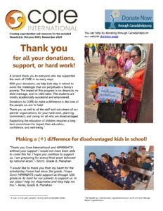 CORE International is a registered charity in Canada BN 841814965RR0001 and has a Government